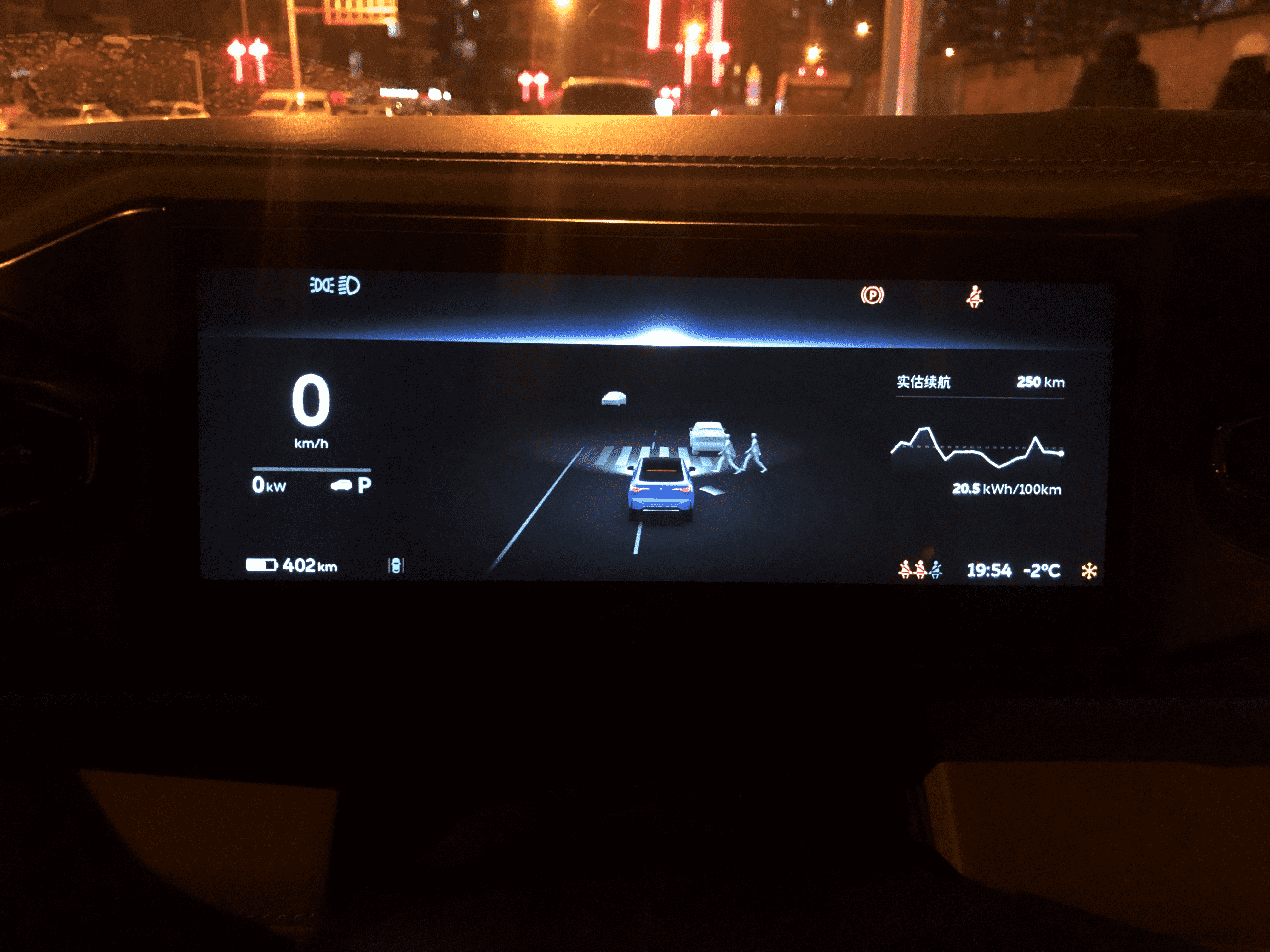 规划路线大概 107.8 公里,再算上闲逛的路程大概共计 120 公里左右。回到家查看剩余里程 NEDC 402km,实估计续航 250km,百公里能耗剩余 22.7kWh,剩余电量 65%。依然还是上文的结论实估续航,参考度较高。