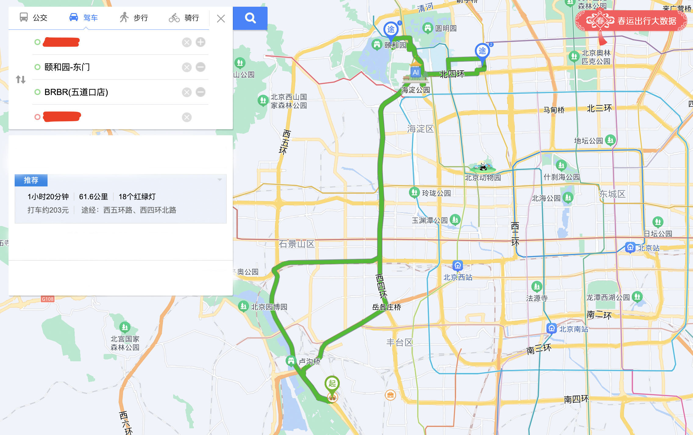 通常从小胖子手里拿到车后,第一个事儿就要从运动模式切回换舒适模式,此时表显剩余里程 517km,剩余电量 84%。Ok, 拿着规划好的路线,数据清零,第一站颐和园,出发!