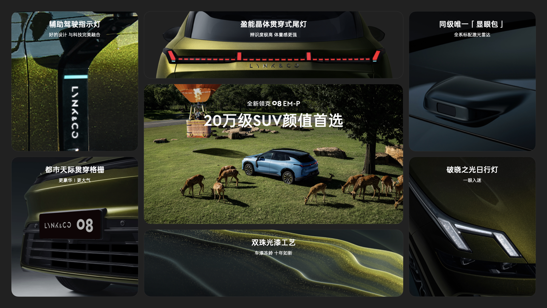 「全新有为,进阶无界」,全新领克 08 EM-P 以家庭用户的高价值需求为锚点,实现在原创设计、舒享座舱、智能互联、辅助驾驶、智控驾驶、主动安全的全面进化,打造 20 万级综合实力更强的 SUV,刷新用户对高端出行体验的想象和期待。在新能源汽车行业持续内卷的今天,全新领克 08 EM-P 的到来,不仅将为消费者选购混动 SUV 提供新选择标准,也宣告了领克打造中国高端新能源汽车品牌的决心与实力,以产品破局,以价值立标,重塑市场格局。