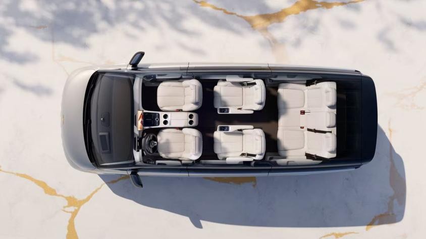 银河 V900 整车尺寸 5360mm×1998mm×1920mm,轴距 3200mm,凭借 8.41㎡的超大车内有效面积和 3974mm 的超长车内有效长度,实现 91.8%同级第一得房率,车内宽度和高度更是分别达到 1645mm 和 1334mm,以「豪华大平层」格局彻底告别空间焦虑。