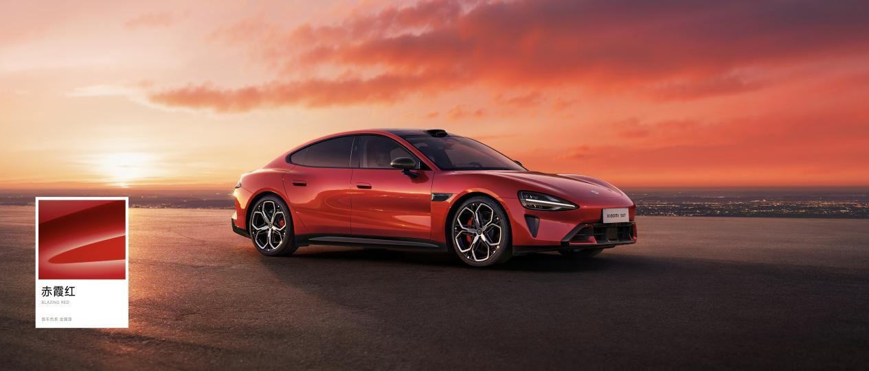 「赤霞红」 热烈奔放,是小米 SU7 的首款正红色,灵感来源于破晓时刻的霞光,在光线下形成独特的「随角异闪」效果,光线角度变化时呈现动态闪烁,让红色更鲜活、更立体,这种饱含能量的红色极具生命力,炽热、浓烈;非常适合喜欢活力、奔放的人群,但同时也不失沉稳。