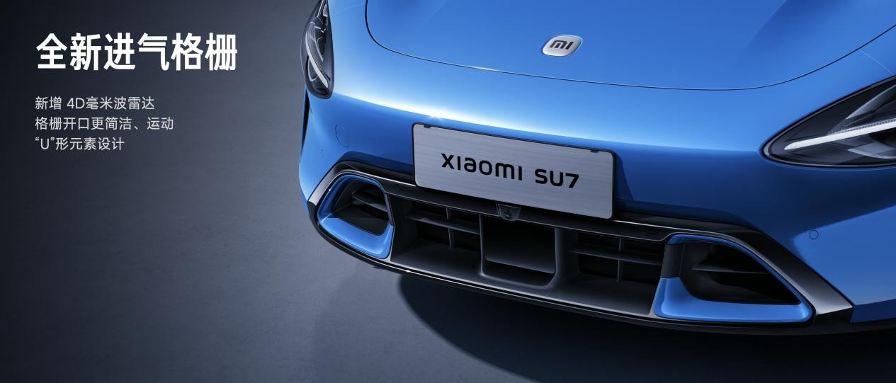 在外观细节方面,新一代 SU7 最明显的升级是采用 全新的进气格栅设计 ,造型更加简洁运动,C 形装饰环比例放大 ,制动散热风道开口更大,中央集成 4D 毫米波雷达, 兼顾空气动力学与智能感知能力。