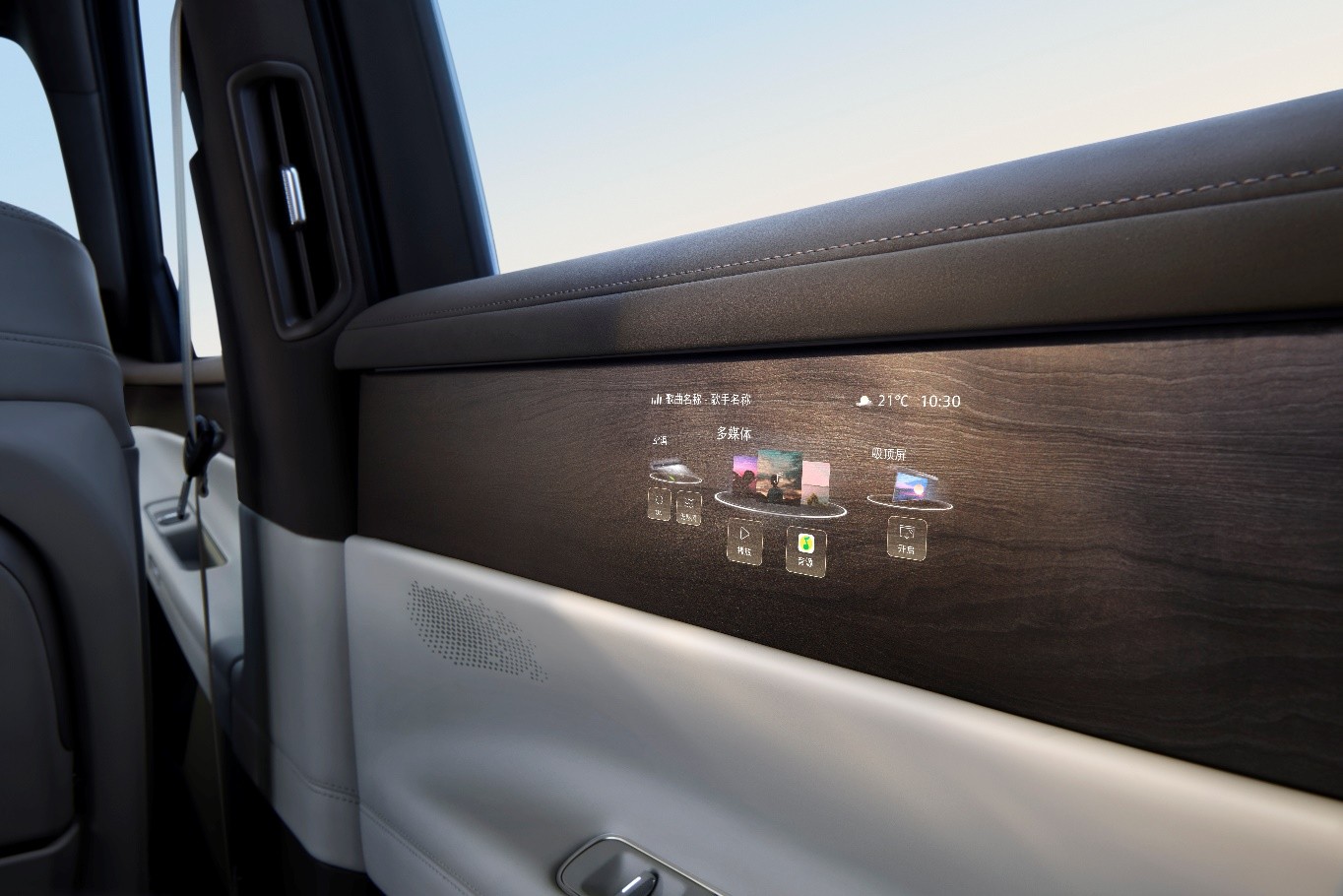 座舱内实现九屏联动,包括前排 15.6 英寸中控双联屏,后排 21.4 英寸吸顶屏以及 3 块 Smart Surface 魔术屏等。其中 Smart Surface 魔术屏平时隐匿于木纹内饰,需用时自动唤醒,后排门板魔术屏可显示侧后方路况,避免「开门杀」;吸顶屏可跟随二排座椅角度调节,无论坐姿还是躺姿,都能获得舒适观影体验。智能 WHUD 可自动追踪驾驶者眼球位置并调整投影,适配不同身高驾驶者;「大众精灵」支持语音与手势交互,让出行更加轻松有趣。此外,首发 ERA SOUND 音响系统,带来沉浸式驾乘体验。