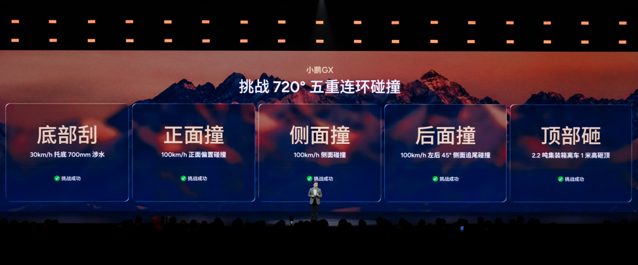 发布会现场,小鹏 GX 把四大安全测试在现场做了还原 , 央视主持人朱广权更是亲身参与测试,甚至当场加大难度,体验完以后,更直言小鹏 GX 是 「稳定的出行伙伴,非常靠得住」,为新车实力强势背书。小鹏将其命名为 GX,既是对 Great(伟大)与 Xplore(探索)精神的极致诠释,更凝聚了小鹏对未来出行的思考。