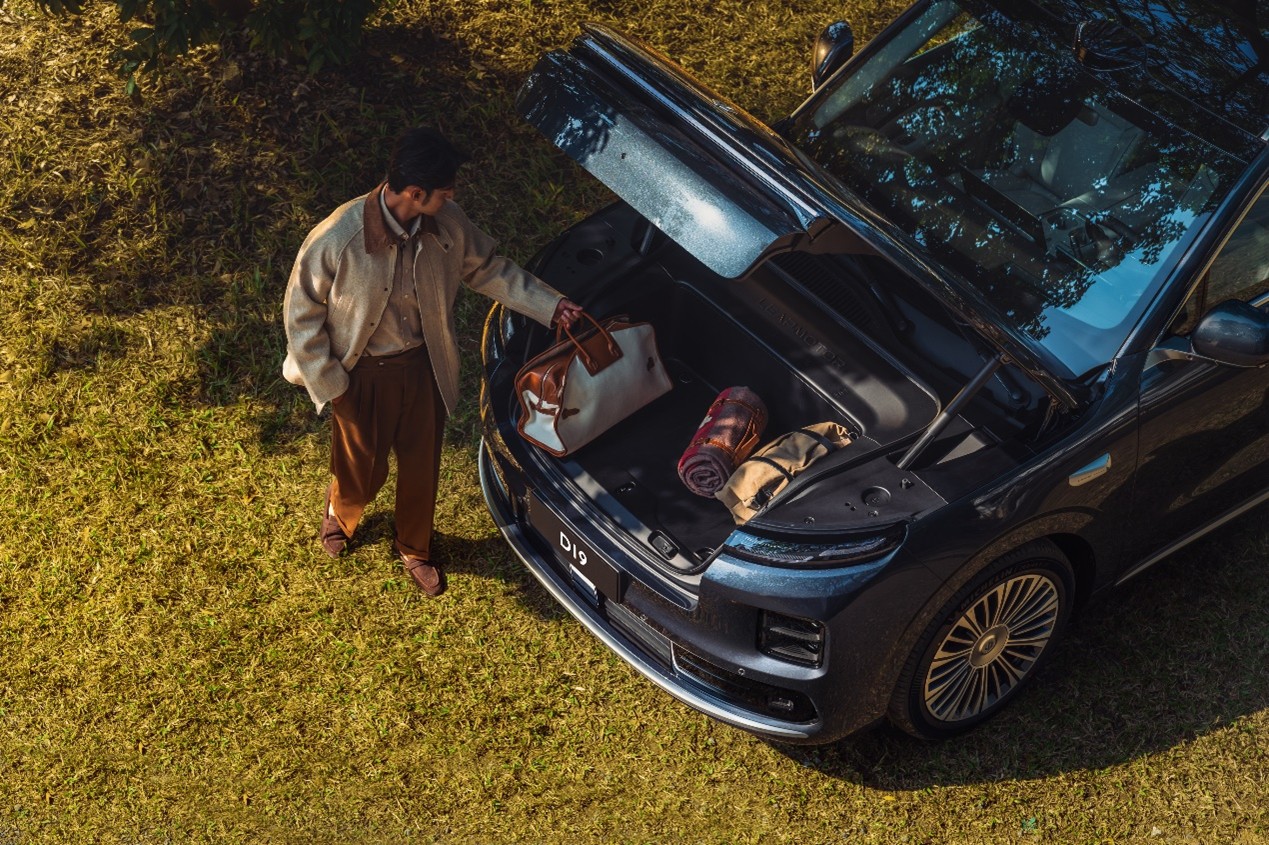 全车拥有至高 50 处储物空间,分类清晰、触手可及,让每一件物品皆有所归。值得一提的是,D19 纯电版配备 L 型低开口超宽电动前备舱,拥有 176L 超大储物空间,支持电动开合、220V 电源插座、防泼水可冲洗、百变组合拓展(如厨房场景)等功能。后备厢常规容积达 337L,七座版二三排座椅放倒后可扩展至 2667L。灵活组合,满足全家出行全场景需求。