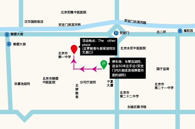 车辇店胡同,进去 50 米左手边(安定门内大街成贤街牌楼对面胡同)。步行路线请看地图(步行约 500 米):