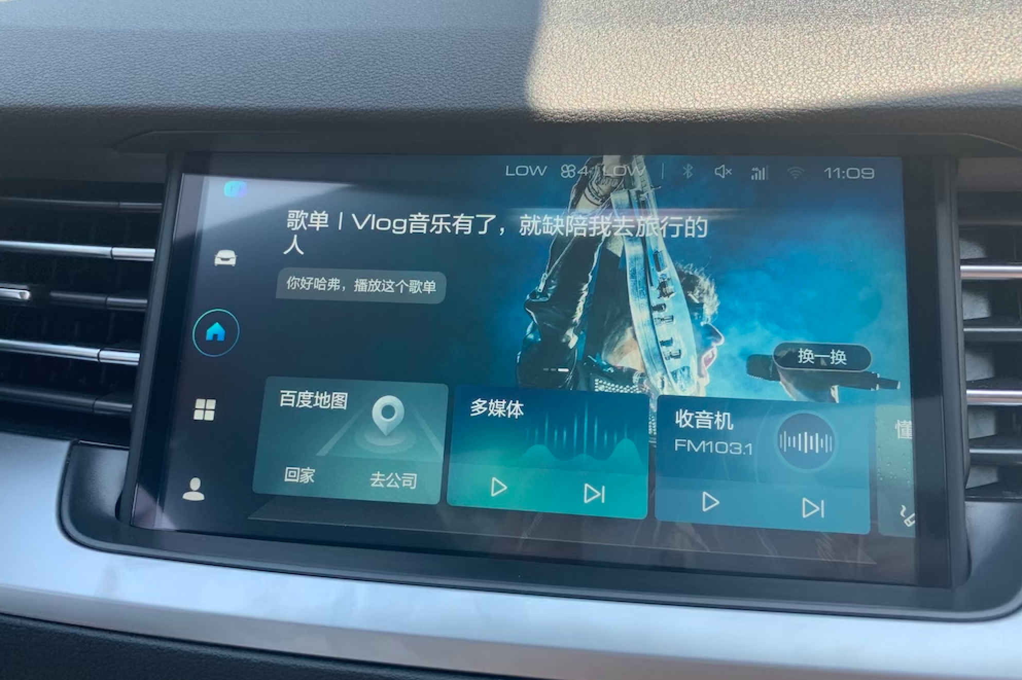 全新哈弗 H6 采用的是一个尺寸不夸张的横屏。整体 UI 风格给我的感觉是很清凉,不刺眼。